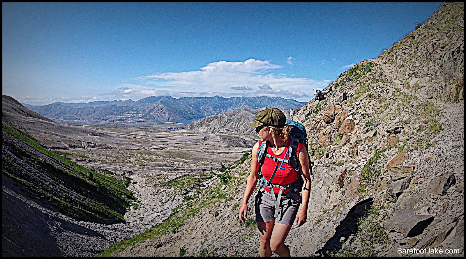 | first steps off the Loowit Trail - Spirit Lake dead ahead |